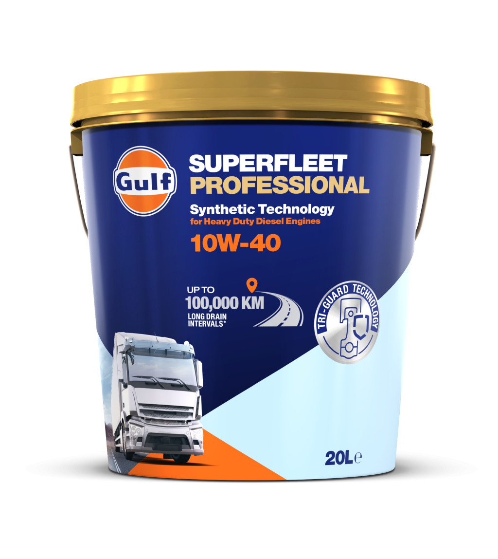 A Gulf Superfleet Professional 10W-40 egy ultra nagy teljesítményű, nagy teherbírású dízelmotorolaj, amelyet úgy fejlesztettek ki, hogy kiváló védelmet nyújtson a modern, nagy teljesítményű dízelmotorok számára, amelyeket közúti és terepjáró alkalmazásokban használnak. Fejlett multifunkcionális adalékanyag-technológiával készült, hogy kiemelkedő védelmet nyújtson az olajsűrűsödés ellen, lerakódások és iszapfelhalmozódás, valamint a korrózió ellen, elősegítve az „Extra Long Drain” (extra hosszú olajcsere időközöket). A Gulf Superfleet Professional 10W-40 az Euro IV és Euro V dízel motorokhoz (dízel részecskeszűrő nélkül – DPF), valamint a Scania Euro VI-os motorjaihoz ajánlott.